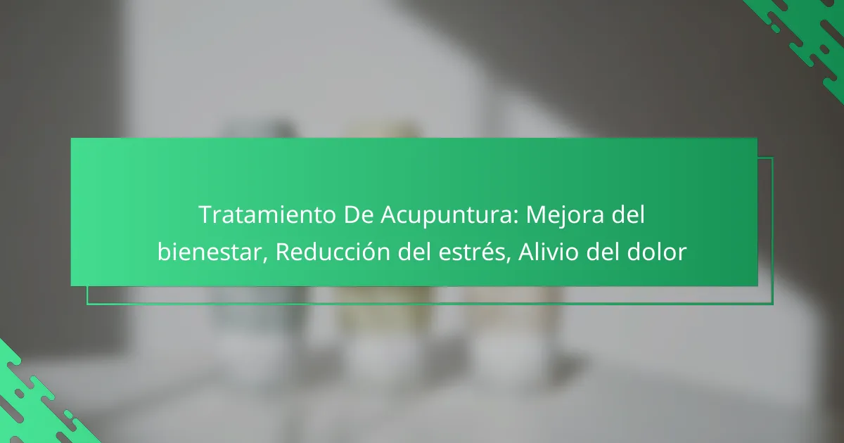 El tratamiento de acupuntura mejora el bienestar al equilibrar la energía del cuerpo y promover la sanación natural. A través de la inserción de agujas en puntos específicos, se puede reducir el estrés, aliviar el dolor y mejorar la salud en general.