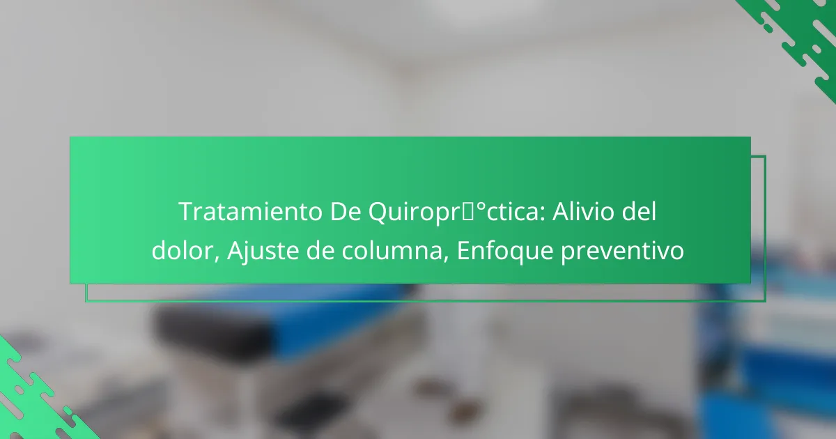 El tratamiento quiropráctico es una práctica de atención de la salud que se enfoca en el diagnóstico y tratamiento de problemas relacionados con la columna vertebral y el sistema nervioso. Utiliza técnicas manuales, principalmente ajustes quiroprácticos, para corregir desalineaciones y mejorar la función del cuerpo.