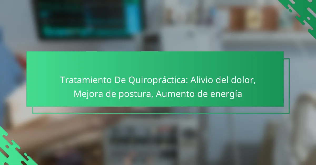 El tratamiento de quiropráctica se centra en diagnosticar y tratar problemas del sistema musculoesquelético, especialmente aquellos que afectan la columna vertebral. A través de ajustes manuales, busca aliviar el dolor y mejorar la función física, promoviendo así el bienestar general.